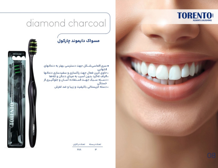 مسواک torento مدل ذغالی دارای کربن فعال برای سفیدکنندگی بیشتر دندان ها است. سایز این مسواک مدیوم یا متوسط می باشد. این مسواک مناسب بزرگسالان و قابل استفاده بانوان و آقایان است. مسواک زغالی تورنتو با برس متوسط بسته 12 عددی با قیمت عمده به بازار عرضه شده است.